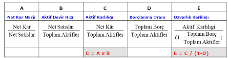 Net Kar Marjı Oranı X Aktif Devir Hızı Oranı= Aktif Karlılığı Oranı